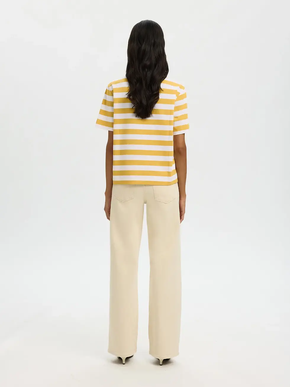 Boxy t-shirt geel streep korte mouw van Selected Femme