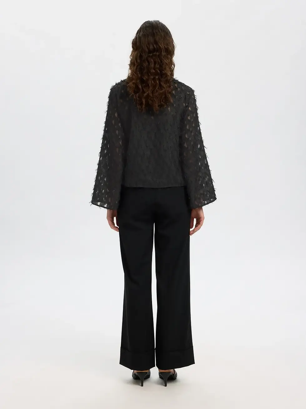 Wijde broek in glitterstofje van Selected